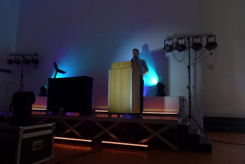 Am Donnerstag, den 7. Juli 2022, 16 Uhr in der Aula war es dann so weit. Ich, Len Bedewitz, der diesjährige Schüler*innensprecher unseres Gymnasiums durfte in einer überfüllten Aula das Sommerfest eröffnen.
