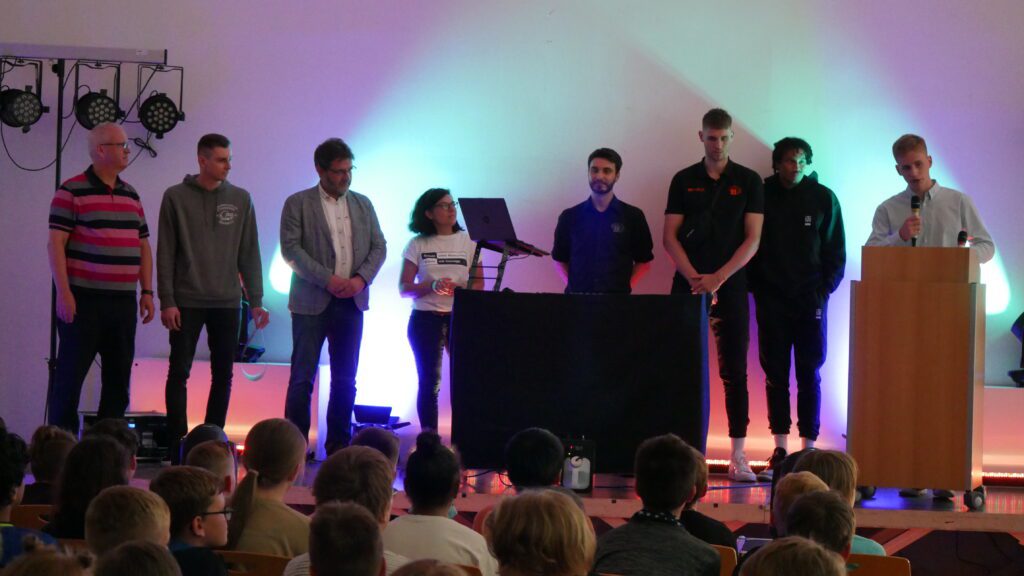 Zweifelsohne voller Komplikationen liefen in den vergangenen Wochen die Vorbereitungen auf Hochtouren, nicht nur, dass unser DJ kurzfristig absagte, dem Wetter geschuldet, mussten auch die Hauptprogrammpunkte vom Schulhof in die Aula verlagert werden. So war es nicht mehr die Frage, wo Sonnenschirme aufzutreiben sind, sondern wie ca. 500 Schülerinnen und Schüler in den Speiseräumen untergebracht und die Workshops von draußen nach drinnen verlegt werden konnten, was uns beschäftigte.