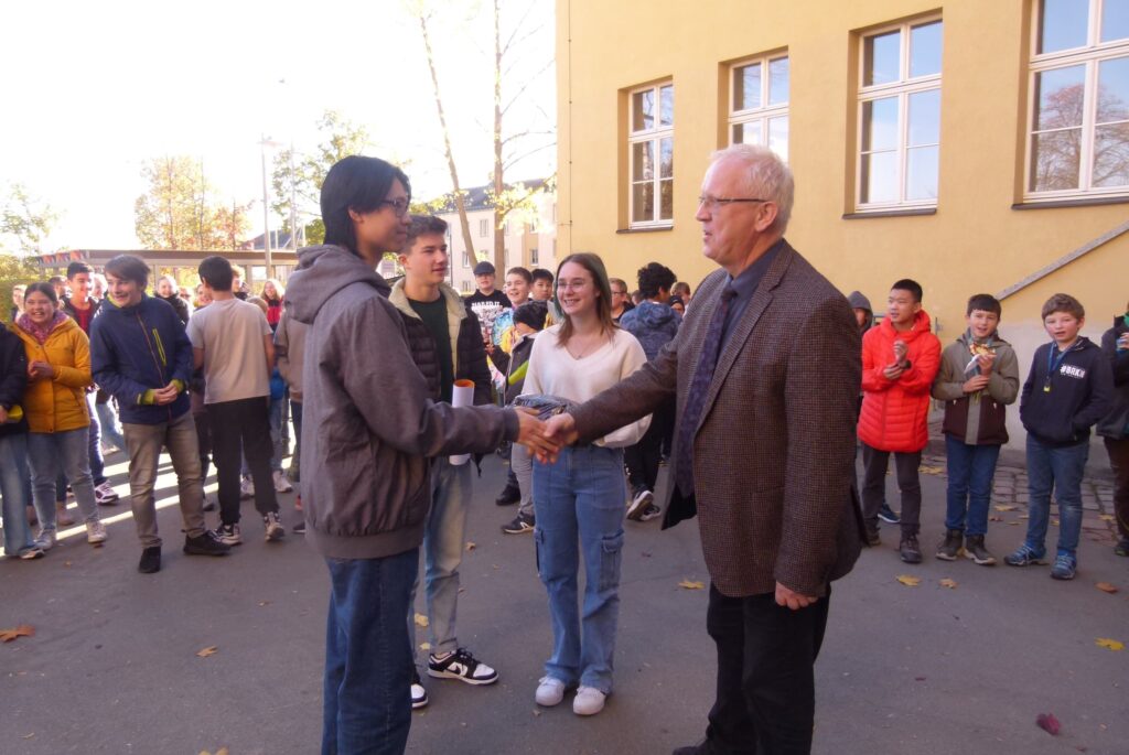 Was macht man wenn der Schulleiter Geburtstag hat? Richtig, man singt Happy Birthday. Aber nicht irgendwie, nein, dazu müssen sich schon alle Schüler und Lehrer auf dem Schulhof treffen, damit dieser Tag auch wirklich in Erinnerung bleibt. Genau das haben wir am 07.11.2023 gemacht, da es der letzte Geburtstag von Herr Lamm ist, den er als unser Schulleiter am Johannes-Kepler-Gymnasium feiert. Wir möchten uns nochmal bei allen bedanken die dabei waren, insbesondere bei der 7-4, von denen die Idee für die ganze Aktion kam. Alles gute Herr Lamm, hoffentlich erinnern Sie sich noch lange an diese Aktion.