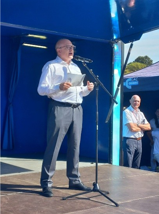 11 Uhr begann die Veranstaltung. Nach einer lautstarken Begrüßung des Veranstaltungsleiters, folgten Reden zweier Schüler des Sportgymnasiums und unseres Oberbürgermeisters Sven Schulze, die nochmals ihr Mitgefühl für die Folgen des zweiten Weltkrieges zeigten und die Motivation, diese Veranstaltung durchzuführen.