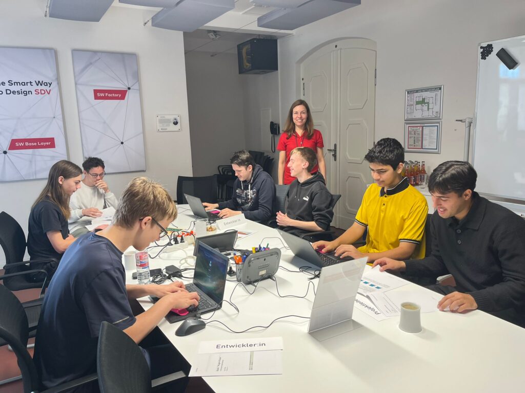 Parallel dazu bot Vector Informatik einen Einblick in die Welt der Softwareentwicklung im Automobilbereich. Die Schülerinnen und Schüler erfuhren, wie Softwarelösungen zur Steuerung und Analyse von Fahrzeugfunktionen entstehen und welche Bedeutung Teamarbeit und Projektorganisation in diesem Umfeld haben.