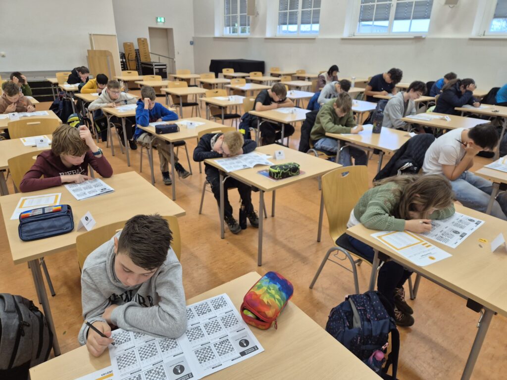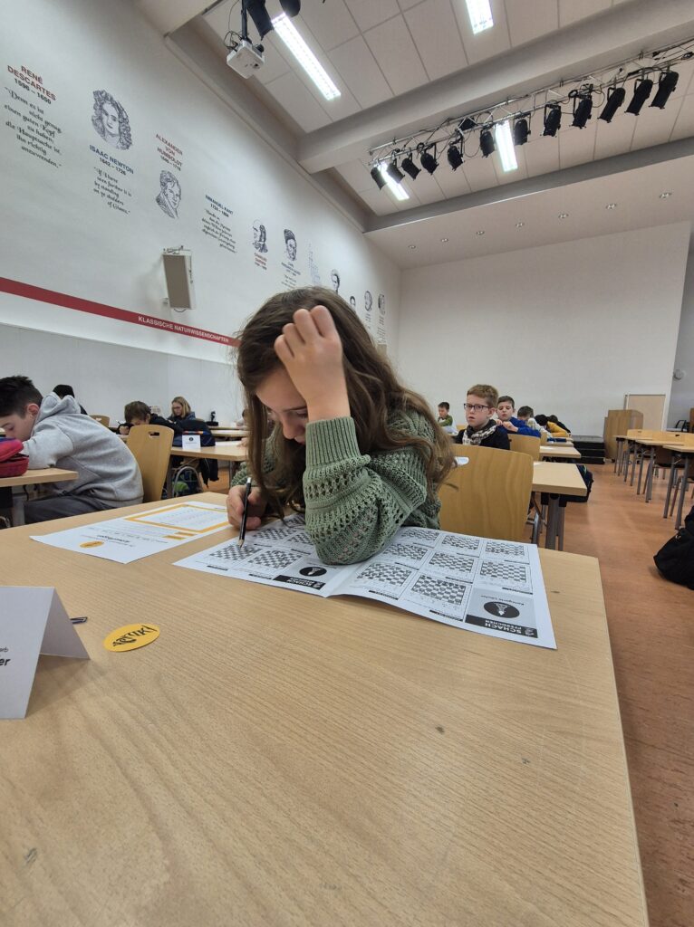 am Donnerstag, 30.10.2025 haben 34 Schülerinnen und Schüler (und Herr Beyer) am Europäischen Schachwettbewerb „Schachpferdchen“ teilgenommen. Hierbei traten in verschiedenen Alters- und Skill-Kategorien laut Veranstalter über 2000 Schulen in den fünf bevölkerungsreichsten EU-Ländern an.