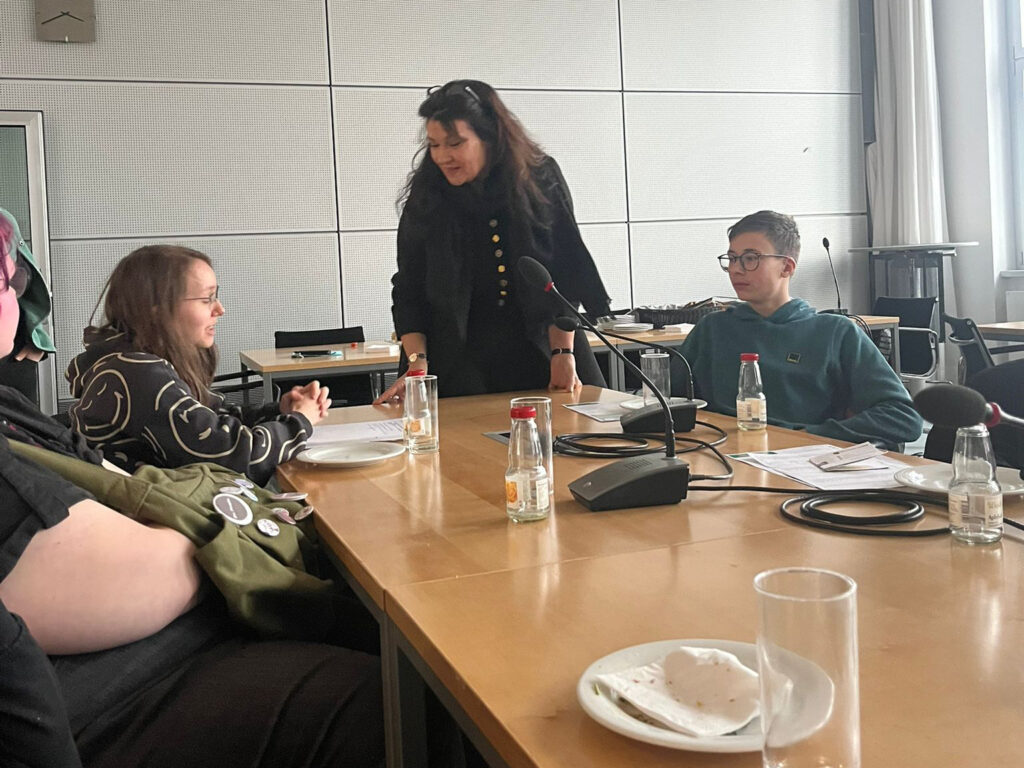 • Gespräch mit der Ersten Vizepräsidentin des sächsischen Landtags: Es folgte ein persönliches Treffen mit Ines Saborowski (CDU), die ein Mitglied des Landtages aus Chemnitz ist. In einer entspannten Atmosphäre, in der wir mit Essen und Getränken versorgt wurden, konnten wir unsere vorbereiteten Fragen stellen. Sie gab uns ausführliche Antworten zu ihrem politischen Werdegang und ihrer Arbeit vor Ort in Chemnitz.
